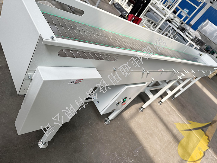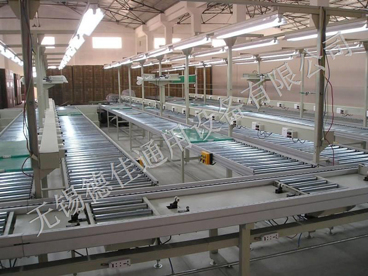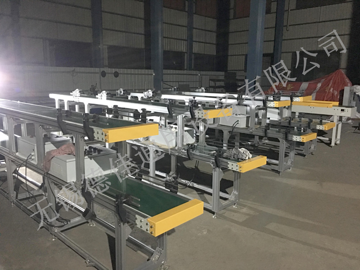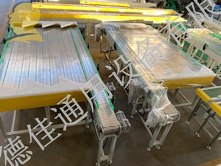 流水線(xiàn)運(yùn)轉(zhuǎn)有:輸送機(jī)、皮帶輸送機(jī)、鏈板輸送機(jī)、爬坡輸送機(jī)以及伸縮輸送機(jī)等。